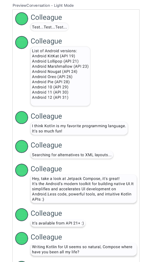 레이아웃을 보여주기 위해서 좀더 뭔가를 추가해서 화면을 빌드한다고 한다. 일단 텍스트를 더 추가해주고 내부적으로 받는 인자도 데이터 클래스로 변경해서 구성해보자.