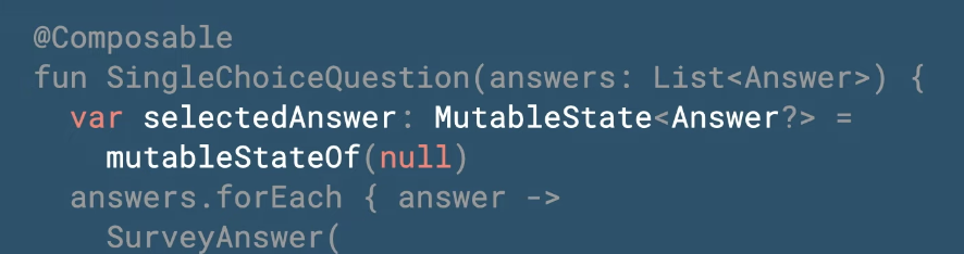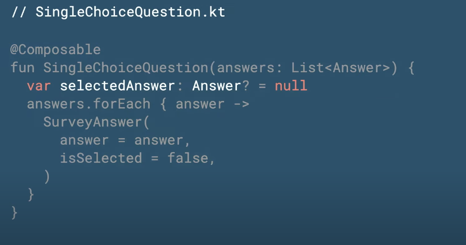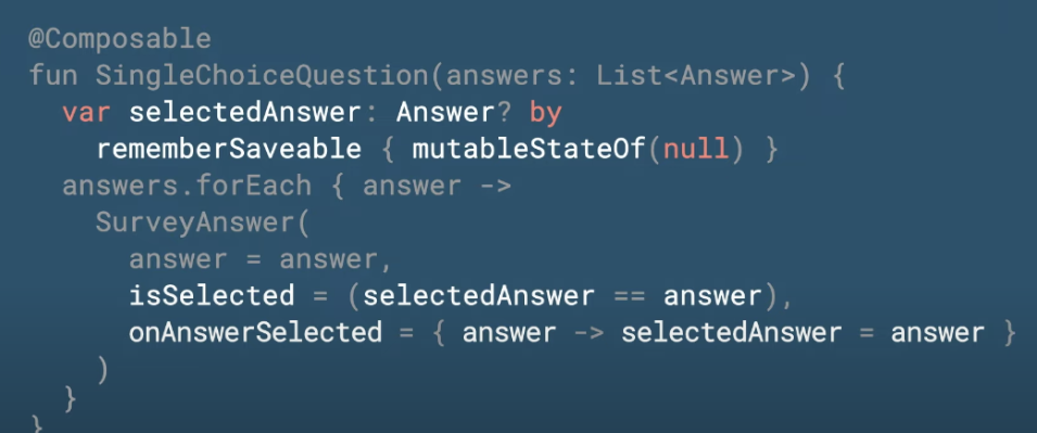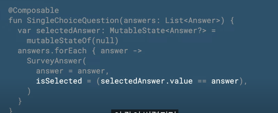 그래서 람다를 통해서 클릭등이 있을때 내부적으로 상태값을 변경하여 다시 UI를 그리고 할수있다(근데 그럼 selected 값은 어캐꺼내지?)