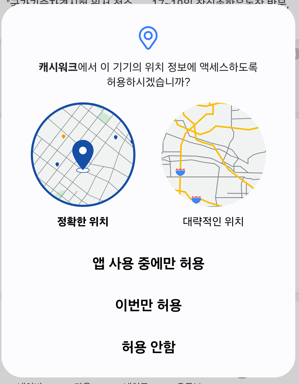 일단 일회성 권한이 뭐냐하면 안드로이드를 쓰다보면 이런 다이얼로그를 만나봤을것이다.