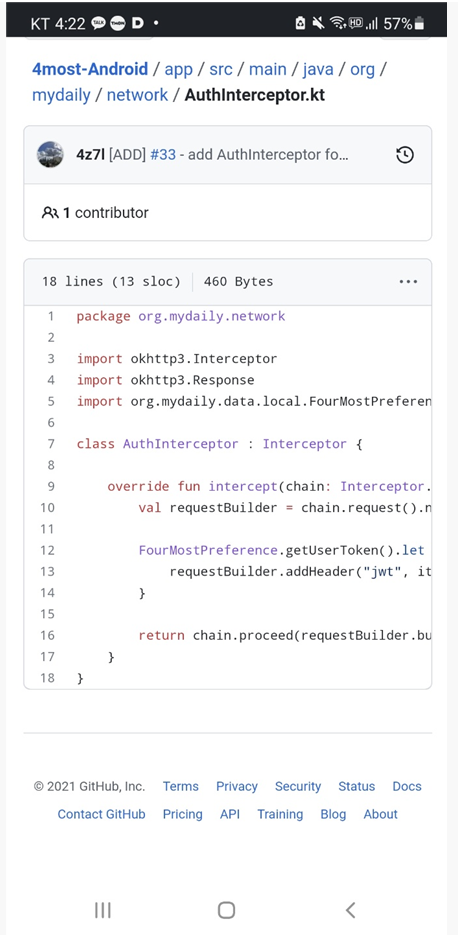 그리고 기존에 intercepter 코드는 따로 class를 파서 작성해서 넣어준다.