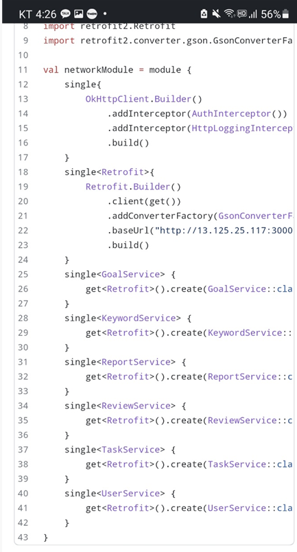 이렇게해서 retrofit 객체를 koin으로 주입해서 의존성을 주입시켜줄수 있었다.