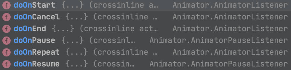 참고한 블로그에서 나온방법인데 저렇게 addListener에 Aniamtor.AnimatorListener를 전달할수있는데 이러한 경우에는