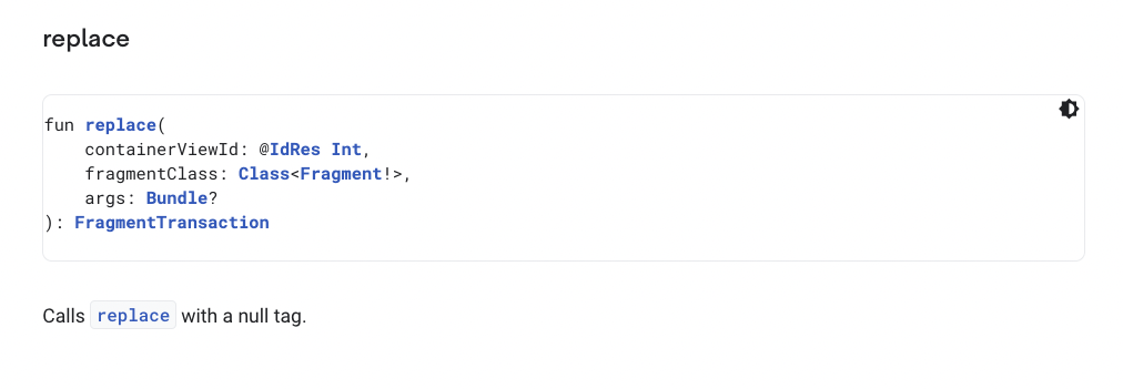 그래서 위에서 말했듯 공식문서 또한 항상 같은 프래그먼트를 제공할수있도록 Class연산자를 통한 접근을 하라고 나와있는것이다.