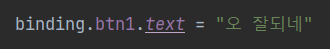 이거는 대략적인 기본코드를 비교해서 보여주기 위한것이고 실제로 사용할때는 kotlin property를 활용 binding변수의 getter을 정의하며 사용한다.