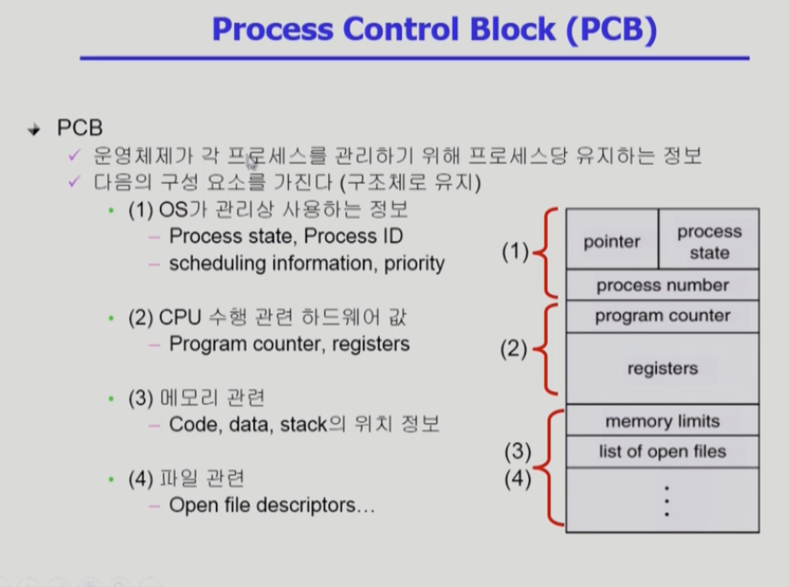 운영체제 커널이 프로세마다 관련된 정보들을 PCB를 통해서 프로세스를 관리한다.