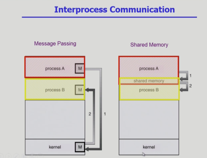 message passing : 프로세스 a가 프로세스 b 에게 메시지를 전달하는 것이다.