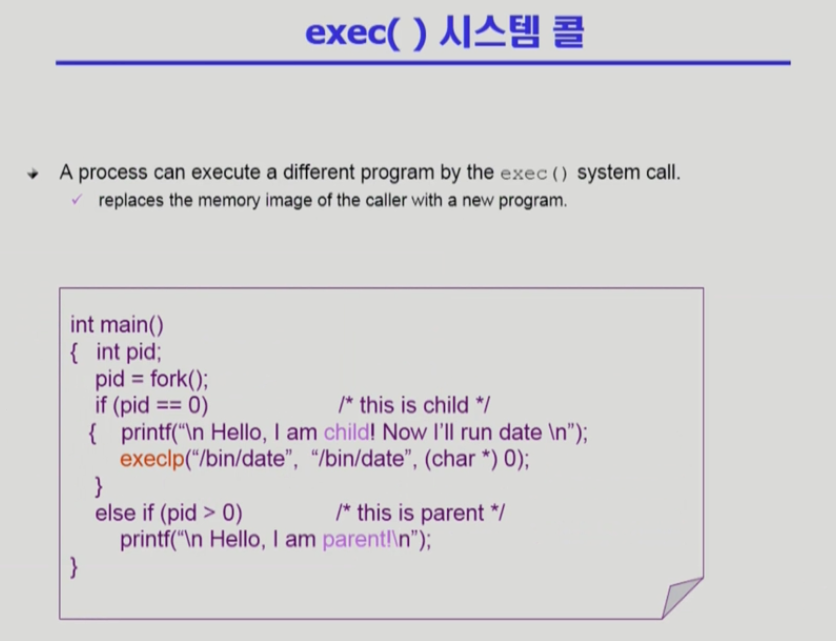 exec() 시스템콜은 전혀 다른 새로운 프로세스로 바꿔주는 역할이다.