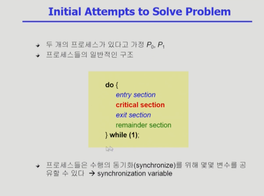 ->공유데이터를 접근하는 critical section 과 그것이 아닌 코드