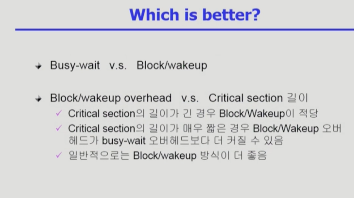 하지만 critical section이 매우 짧을시 오버헤드가 더 클수있다.