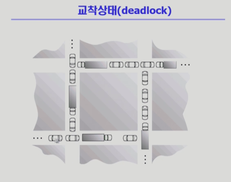 데드락: 일련의 프로세스들이 서로 자원을 쥔상태에서 상대가 가진 자원을 요구해서 서로 아무일도 하지못하는 교착상태이다.