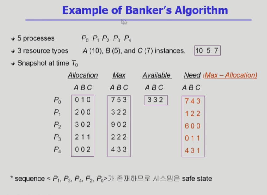 즉 남은 자원으로 need 를 충족 가능할때만 자원을 할당한다.