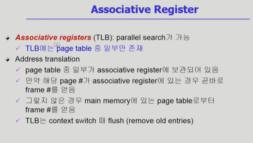 -> associative register 로 구성되는 TLB 라는 일종의 캐시이다.