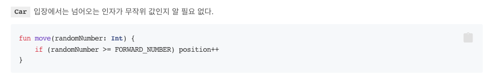 예를들어 car의 move를 테스트 하고싶다 하지만 car에 테스트 하기 힘든 random 을 뽑는 로직까지 한꺼번에 포함되어있는것이다.