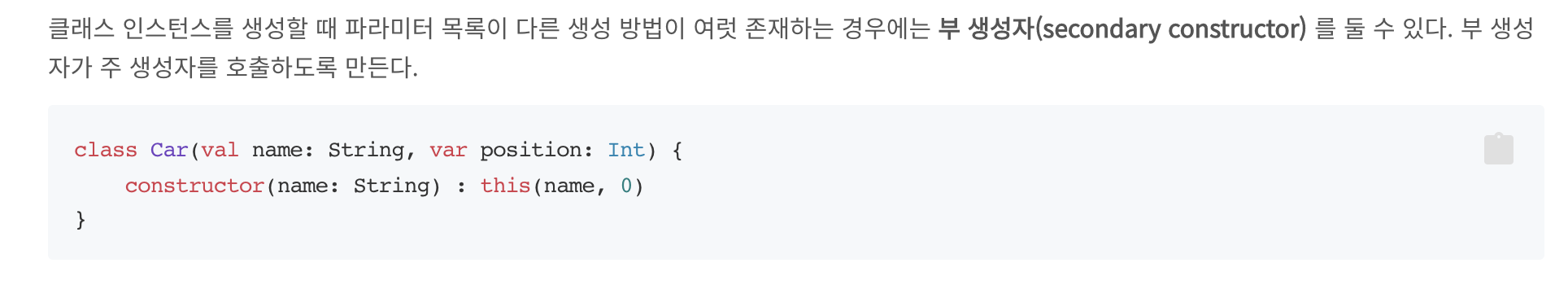 부생성자의 용도는 결국 여러 여러종류(방법)으로 파라미터를 받고싶을때 부생성자를 통해서 입력값에 따라서 적절히 처리하게 될수 있을것이다.